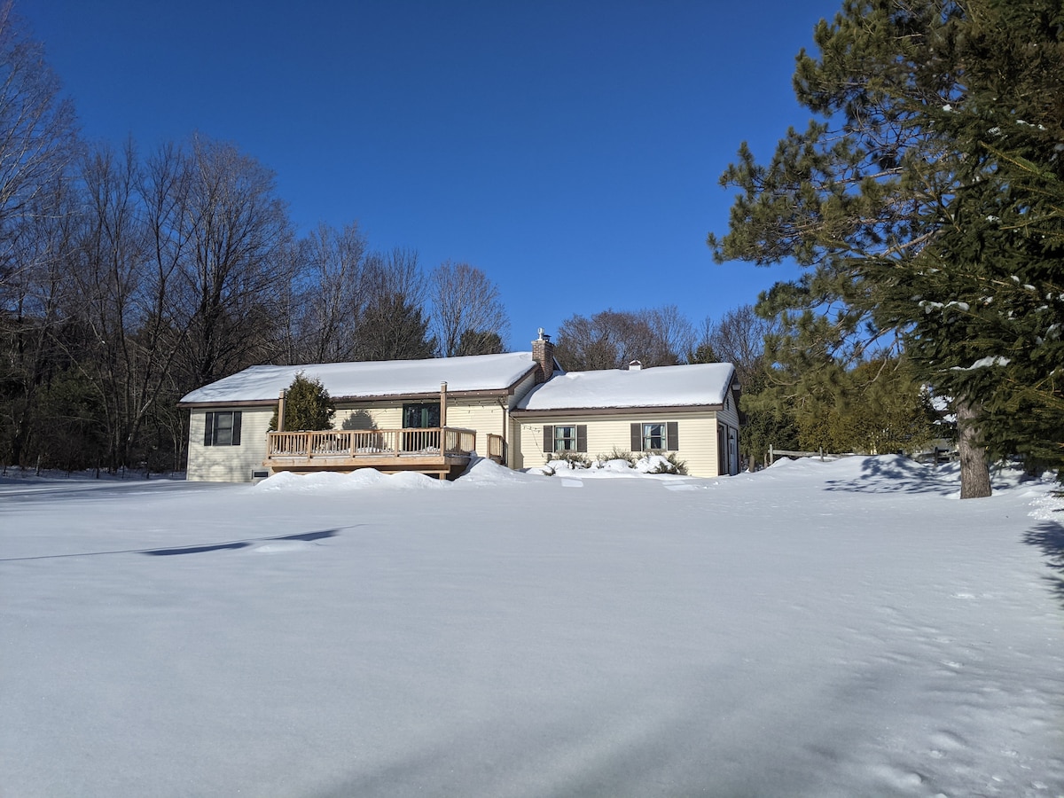 Situated directly by the Ausable River and surrounded by beautiful vineyards and gardens you will be immersed in nature at any time if the year. It's sure to restore the soul. The gentle rumble of the river is ever present as you look out over the natural beauty. During the summer cool off in the river and come back to the screened in porch for an evening meal. In the winter fire up the pellet stove and get cozy. 15 minutes to Whiteface and Keene and 25 Minutes to Lake Placid.