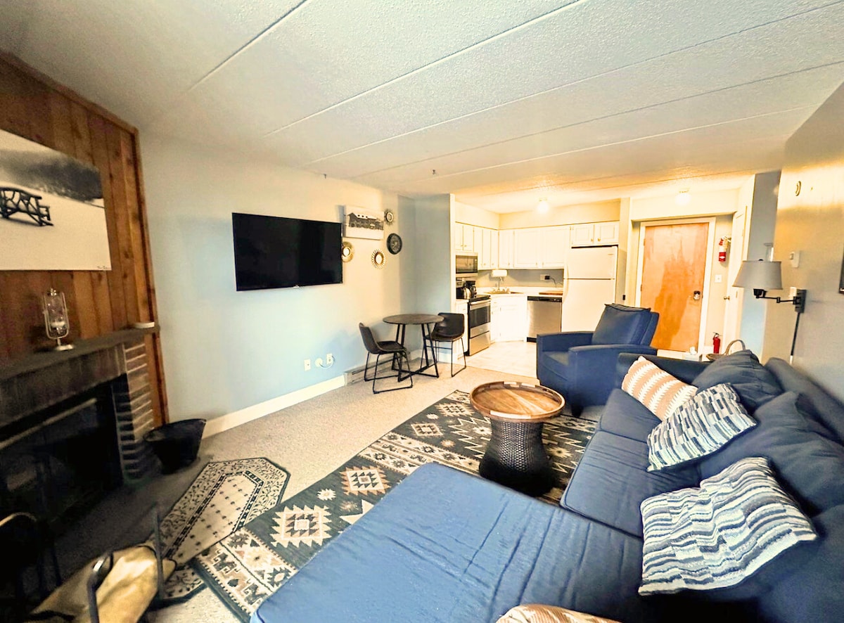 *Exterior construction on siding until end of May *Amenity rich studio only a 5 min walk to Mt. Snow's famed Magic Carpet (runs on weekends) *Gas Fireplace *Queen memory foam Murphy bed *Queen pull out with memory foam mattress *Well appointed kitchen *65" curved UHD TV *25Mbps Wifi *USB wall outlets *Blue tooth music streaming to TV *Ample closet space *Patio with rocking chair *Easy 1st floor access *Fitness center access *Hot tub *Outdoor pool seasonal *Loaner amenities such as phone charger