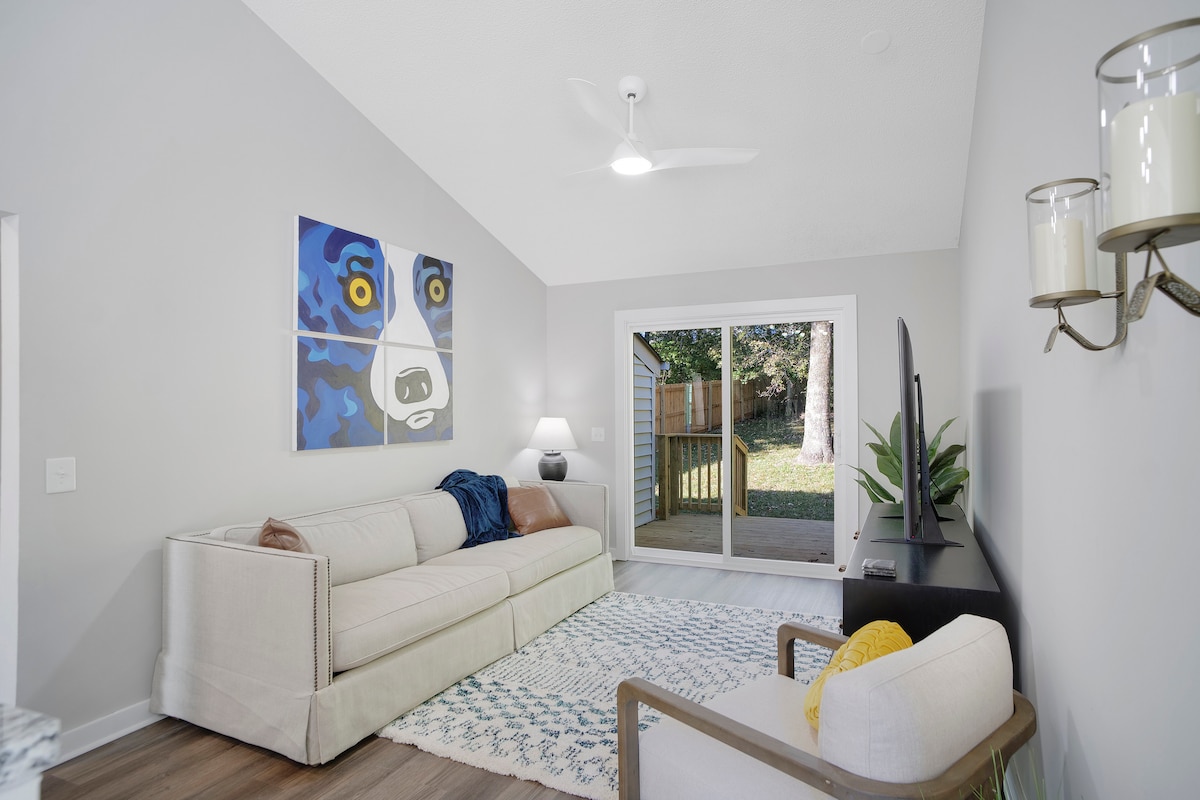 This oasis has a lot to offer! Full kitchen, living room, & bathroom with a lofted bedroom. Plus a secluded upper deck in the privacy of surrounding trees. Easy access with the keyless entry door lock. Just 5 min to the lake, 25 min to Nashville Airport, & 30 to downtown. Easy access to I40 for adventures all across Tennessee! Come see us for a relaxing getaway, business, or study! Ideal for long stays and remote workers. * One unit above another. No shared space. Exterior camera in use-motion.