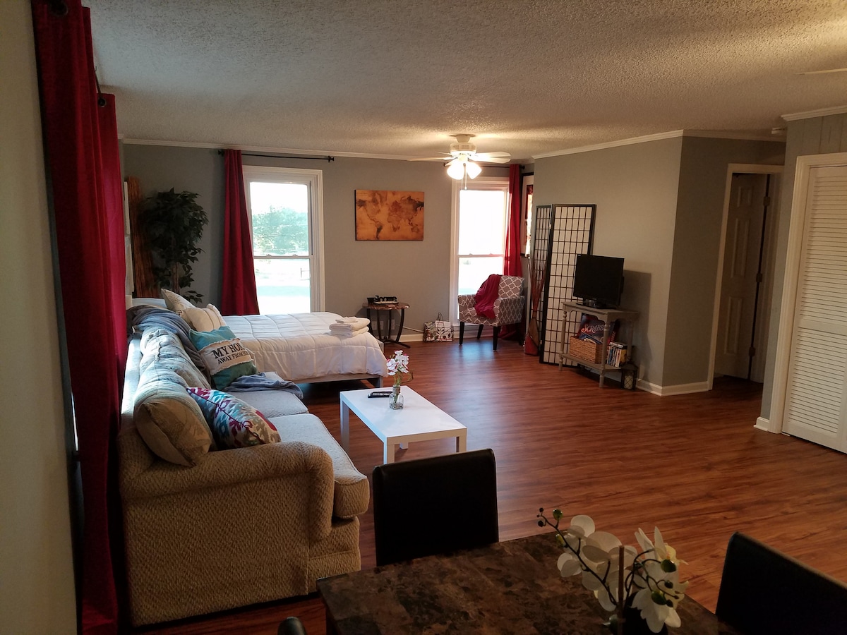 Come enjoy the Nashville area and relax in our quiet, guest suite. It is close to the city and less than 5 minutes to the lake! Get the best of city-life, lake-life and relax around the camp fire in a beautiful country setting! This studio suite has Nashville charm! It is sectioned with brick and shiplap privacy walls along with curtains. Enjoy your morning coffee on a private covered patio while watching the wildlife and planning your adventures. We have deer and wild turkey visit regularly!