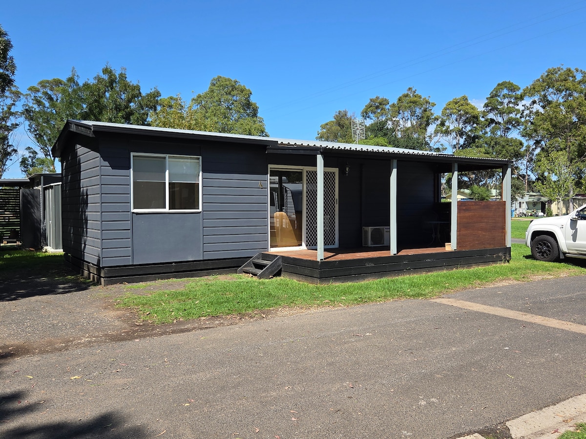 New cabin in amongst revegetated native bush. Only 2.5 kilometers from Wonthaggi and 5 kilometers from the beautiful beaches of Cape Paterson. A great, peaceful place to base yourself while you visit close by attractions such as Phillip Island with the Little Penguins or even a day trip down to the impressive Wilsons Promontory. Travel around our coast road to Inverloch for more beautiful beaches and eateries.