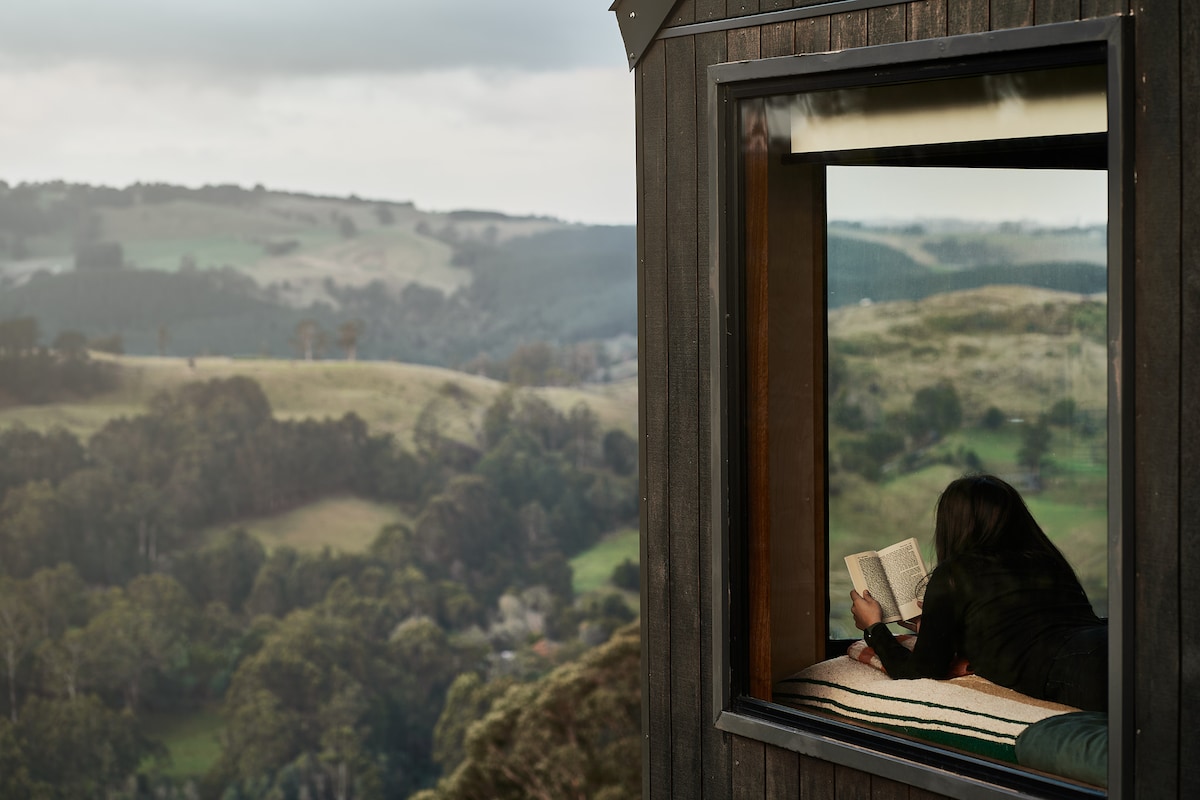 Whitegum is not just a place to stay, it is a place to be experienced. This hand-built bespoke cabin boasts 270 degree views through floor to ceiling windows and feels like a luxury pod that has just been dropped into the heart of the forest. It is surrounded by towering white gums and ancient tree ferns. A gentle creek wraps its arms around Whitegum providing not only a perfect environment for wildlife to roam but an ideal escape for those seeking tranquillity and a connection to the land.