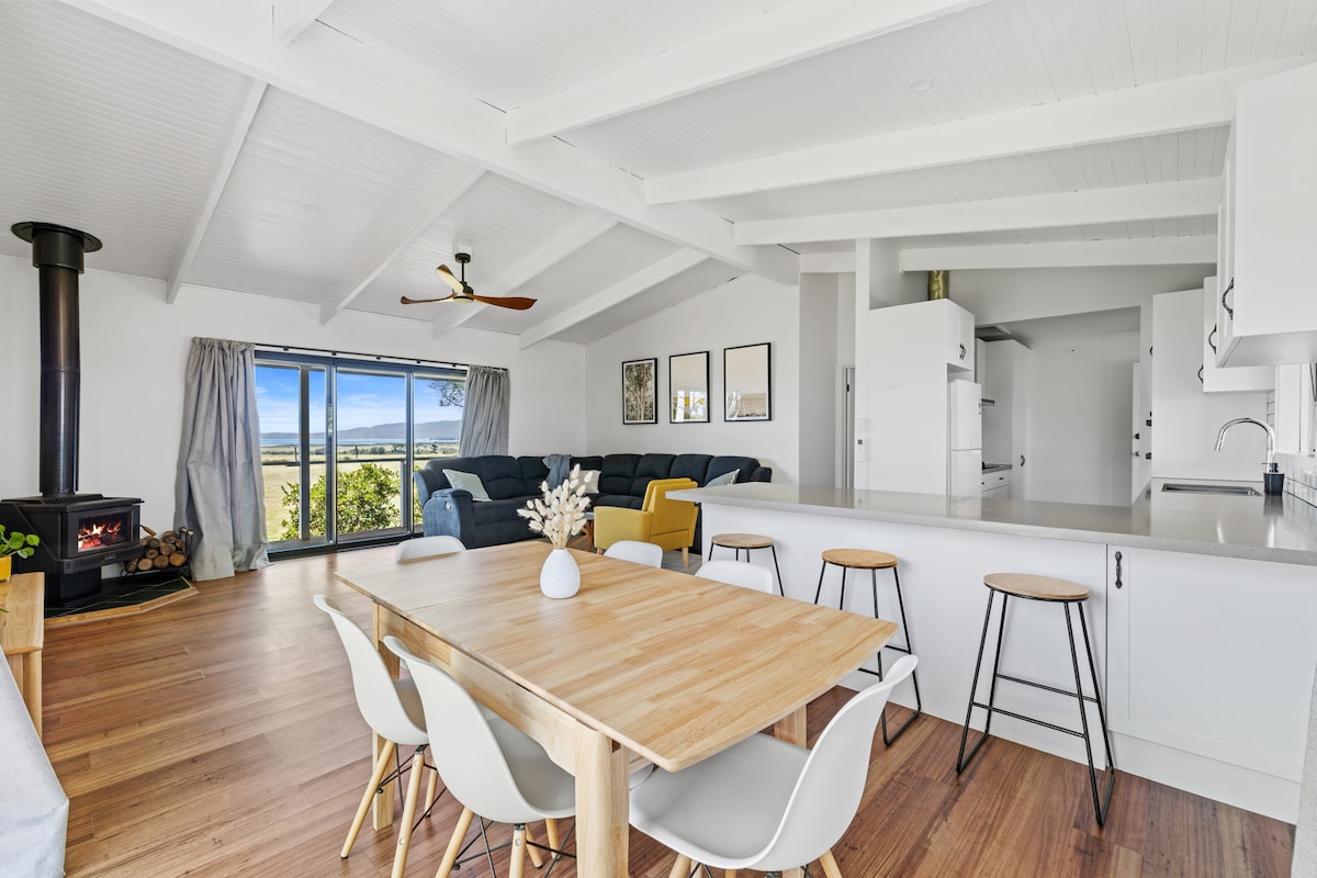 Enter a realm of comfort and breathtaking views overlooking the stunning landscape of Wilsons Prom: encompassing the coastline, rolling hills, and tranquil inlets. Delight in expansive night skies adorned with countless stars, relish in serenity, and discover the freedom to unwind in our newly refurbished, 4 bedroom home. Our space caters to families with children and infants, and groups, offering the convenience of wireless internet access. Get ready to be captivated by this amazing retreat.