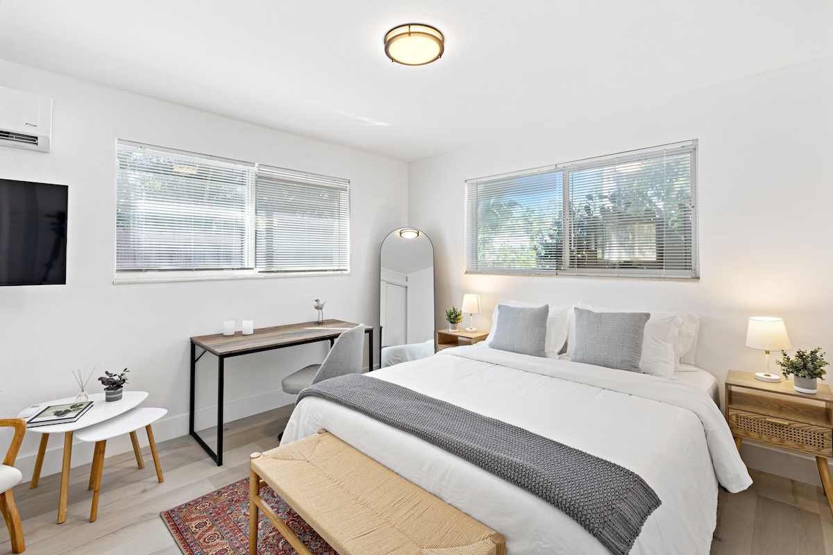 Kick back and relax in our guest suite located a short walk from Wilton drive and just a 10 min drive to Fort Lauderdale beach! Perfect for couples, solo explorers and small family vacations Our guest suite sleeps up to 3 people (2 people in full bed, 1 person on a pull out twin sofa bed) Your space is completely private, you have your own private entrance, parking and patio/garden We strive to use only eco friendly products in our suite 🌎🌱