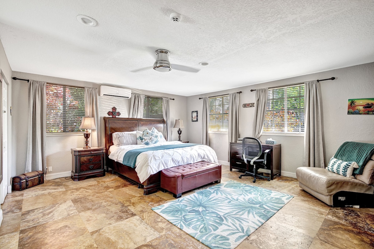 Beautifully furnished upscale home with a private, secluded backyard oasis. Enjoy the heated saltwater pool, hot tub, lush landscaping, and stylish indoor spaces with modern comforts. Fully equipped kitchen, gas grill, beach chairs, free WiFi, and cable TVs included. Perfect for relaxing, entertaining, or working remotely. Just a short walk to Wilton Drive and a quick drive to beaches and shopping.