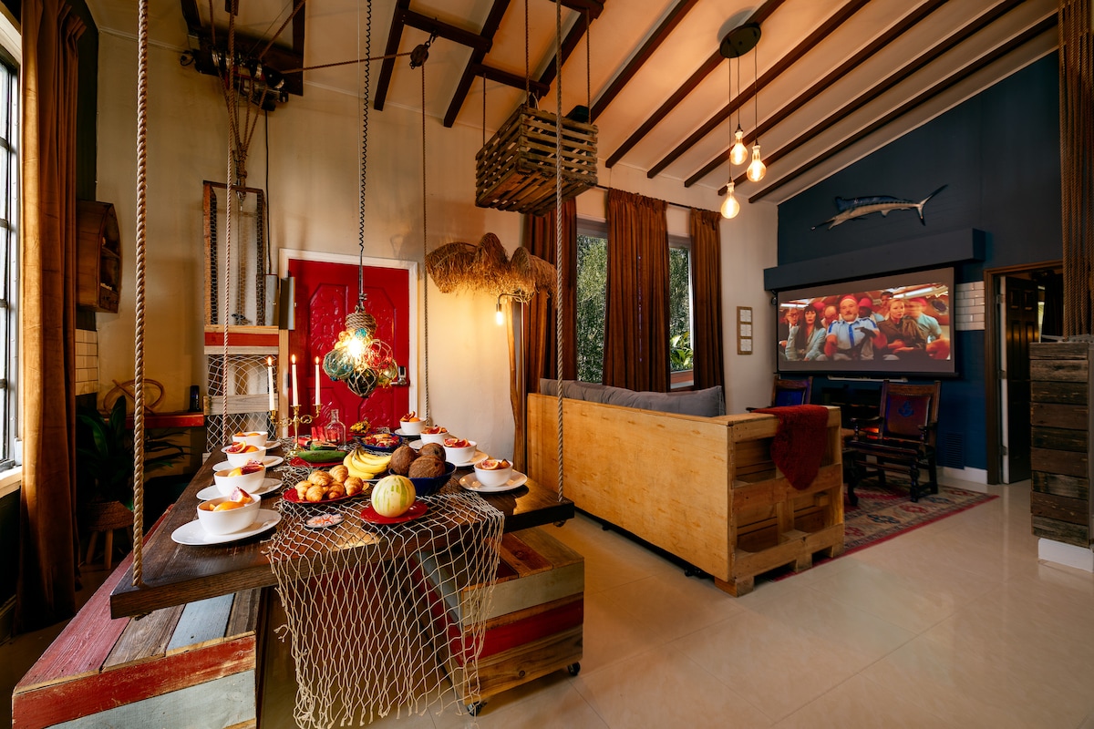 Take it easy at this tranquil getaway. Guests receive access to private cabins, outdoor bathroom, outdoor kitchen, tree house, koi pond, lounge, zen garden and a floating dock. It's a mix of modern amenities with a Bohemian edge. This unique artist’s retreat feels like a different world. The property was built by hand with influences of the travels of the owner always with sustainability in mind. This hideaway is the pure expression of glamping and a resort spa.