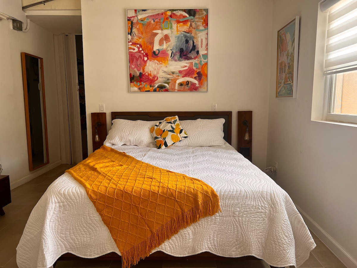 美丽可爱的单间公寓,配备加大双人床。