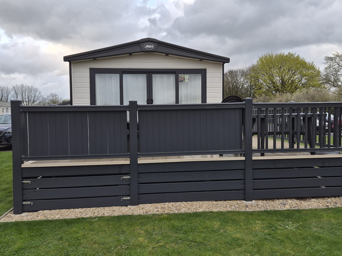 This beautiful cabin sits right over our lake with amazing views 🦌 🦆 You will have Your own private lake with use of a rowing boat. Very spacious open plan Cabin with a roll top bath looking out right over the lake. Bike hire available Fully equipped kitchen with large dining table perfect for cooking up some lovely food! Smart TV and super king bed Local pub in walking distance 🍻