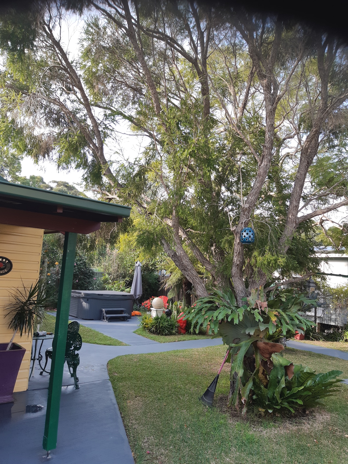 Newly renovated , architect designed apartment set amongst trees with views over the city to the ocean. The apartment has an open plan lounge ,dining and kitchen area with a comfortable sitting space and work desk which opens onto a sunny wrap around verandah, accessed through timber sliding doors. One of 2 ground floor apartments, completely private Owners live upstairs Several flights of stairs through garden to entrance. No handrail. Not recommended for guests with mobility issues