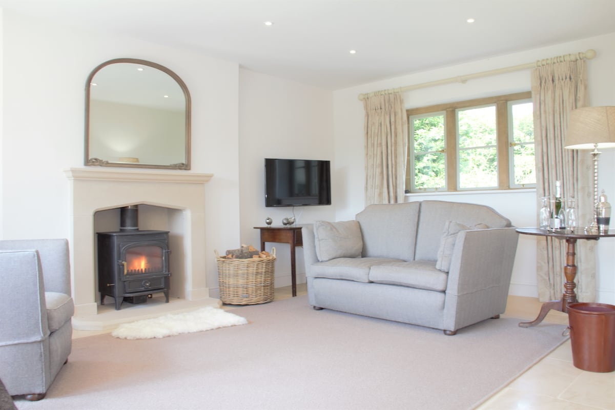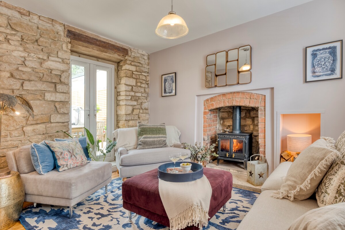 The Bolt Hole - a charming, refurbished, dog-friendly, Cotswold stone cottage with UK King bed, central to pubs and cafes - Late check-out 11 am + NO cleaning or Airbnb fees - Log burner + New Kitchen w/ dishwasher + Washing Machine - V Comfortable UK King-Size mattress - Fantastic walks from doorstep - En-suite: new large shower 🚿+ roll-top bath 🛀 - Smart TV - Cot and highchair Nestled in the heart of stunning Winchcombe, steps from pubs, restaurants, cafes, and historic Sudeley Castle.