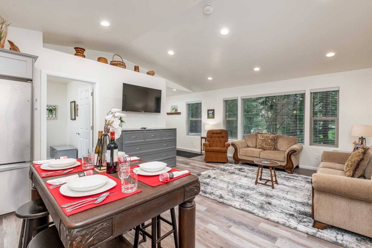 Upscale recently renovated private loft in quiet wooded neighborhood. High ceilings, deep carpet, glass and ceramic tile, roomy shower. Luxury linens & comfortable Cal King bed Free WiFi, new 50" smart TV. Kitchenette with dishes, utensils, cookware. New 1800 watt cooktop Pantry has snacks and goodies. Private entrance and deck up stairs. Country feeling right in town. Minutes from shopping, Old Town, beach, dunes, trails. Respectful owners onsite. Raised Aerobed available for 3rd guest.