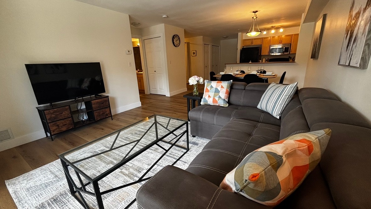 We welcome guests to stay and relax in our newly updated 2nd floor condo. This 1 Bedroom + Den unit comfortably sleeps 4-6 people – perfect for a getaway with friends or family. The unit is located near the complex's Pool/ Hot Tubs, Workout room, and walking distance to James Chabot beach. The condo complex is centrally located and close to downtown Invermere and the ski hill (Bus transport to Panorama right across street). Lots to see and do in this location year-round!