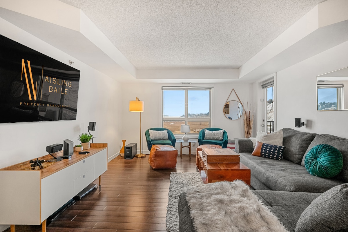 Embody the serenity of calm waters, clear skies & stoic mountain ranges at this fully equipped, central condo. Enjoy your morning cup of tea or coffee on the private patio, with views of the Rocky Mountains. Situated in the sought-after Lake Windermere Pointe community, your stay includes access to their gym, hot tub & seasonal outdoor pool. Only steps away from James Chabot Beach, you can be in the sand or skating the Whiteway in minutes. Enjoy peace & convenience here at the Sapphire Serenity.