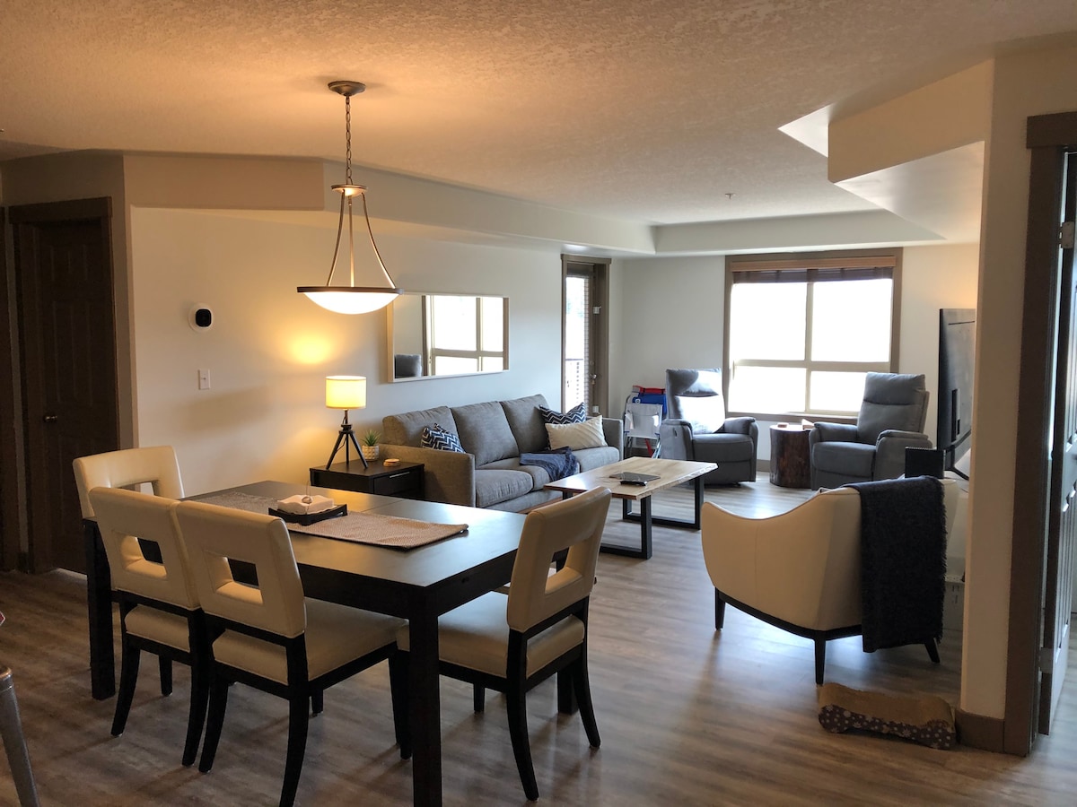 ⭐️ Experience The Valley Lifestyle in your home away from home. You’re within steps to the golf course, within minutes to hot springs, ski hills, and hiking trails. ✔ Amazing views, AC, private balcony, BBQ, kitchen, parking ✔Beds: King,pull-out queen,folding twin ✔Pro cleaners with 60-point checklist ✔Fast WiFi, Two Smart TVs ✔Pet-friendly, easy outdoor access ★ Message us for special request ★ ★ Book your dates b4 they’re gone!★