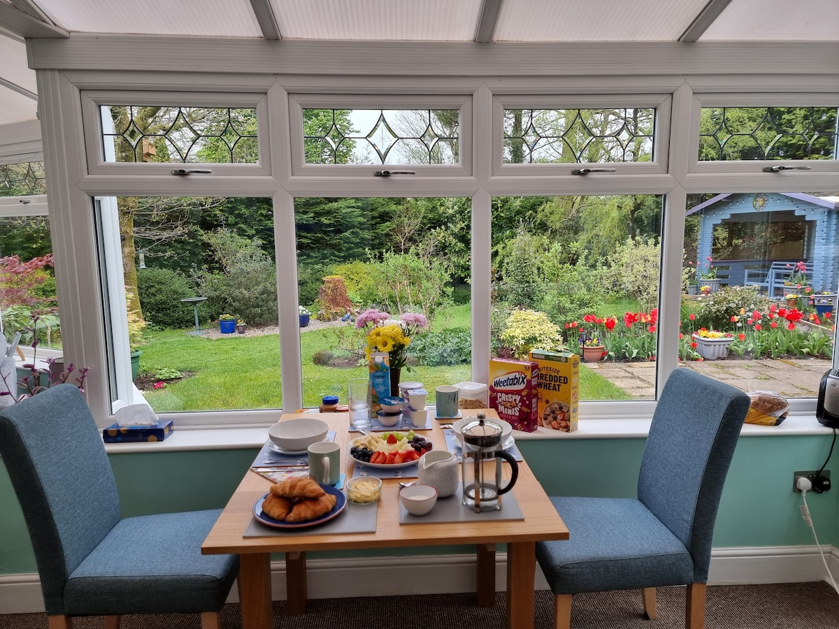 Private guest suite has bedroom with super king OR twin beds, + bed/sitting room with full size single day bed. Electric blankets + ample heating in winter. Fans in summer. TVs in both rooms. Kitchenette and Jack and Jill bathroom. Comprehensive continental breakfast in conservatory ( dining room on cool days) Lovely garden for guests to enjoy. *Kendal town centre is a 15 minute riverside walk *Walks from the house *Windermere just a 15 minute drive *Carus Green golf course 2 min drive