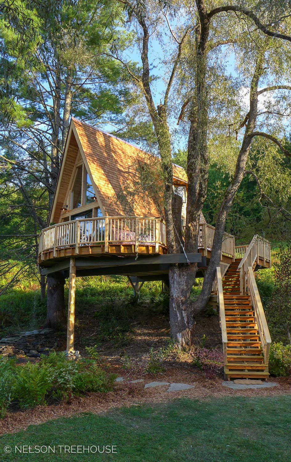 This one-of-a-kind accommodation was featured on Animal Planet’s Treehouse Masters! It offers a sizable sleeping loft with queen bed, living area, wrap around deck, bath with enclosed shower, and a kitchenette with mini-fridge, microwave, sink and dish-ware. It overlooks a gorgeous pond and is located in a village setting that can't be beat--enjoy the Rock River, hike in the Green Mountain National Forest, visit the nearby covered bridge, ski at Mount Snow, and do city things in Brattleboro.