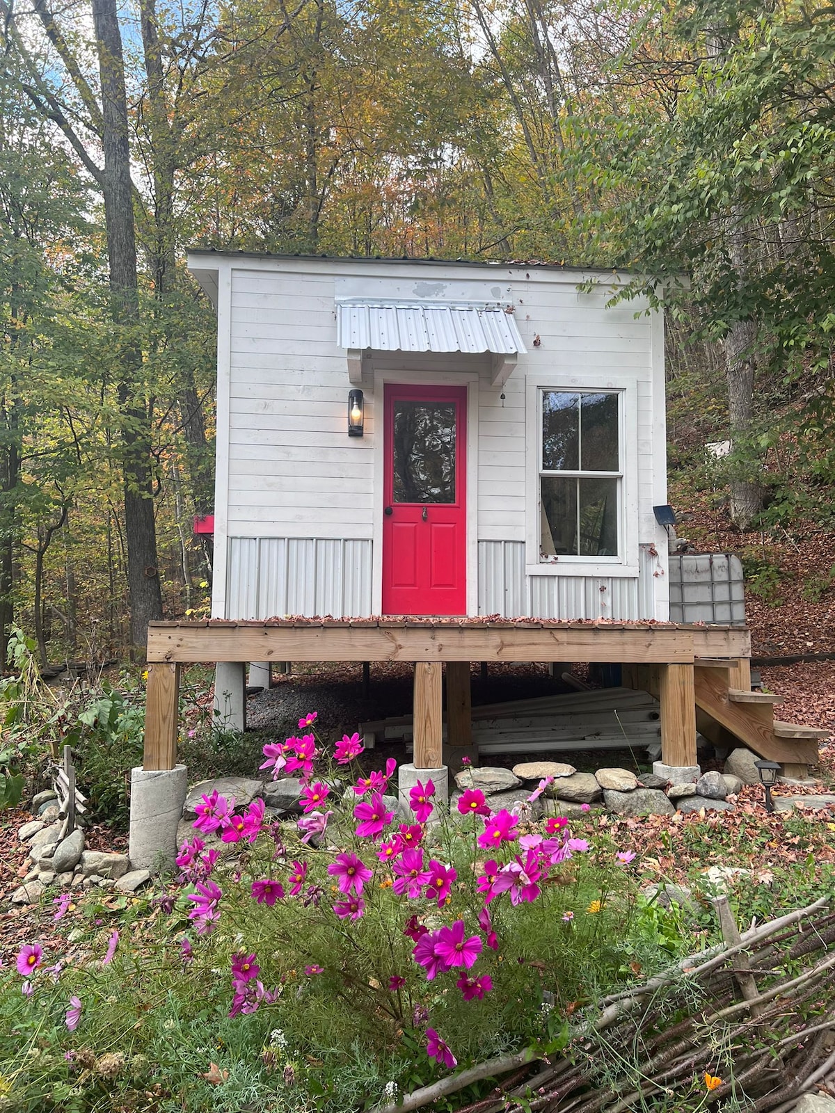 Renovated camp, 800 sq ft, near Brattleboro VT & Lake Spofford NH. Hiking trails start at the backyard. I15 minutes to Brattleboro, 5 minutes to the boat ramp on Connecticut River, 15 minutes to Lake Spofford, and 50 minutes to Mt. Snow. Across the road is a (seasonal) tumbling waterfall and gorge called “the Devils Den”. The backyard leads to woodlands with miles of trails. Enjoy a relaxing evening by the firepit overlooking the brook. Or outdoor cooking on a propane grill. ...2 Kayaks.