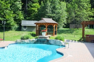 Master Suite: 1 Queen bed & 1 twin private full bath , sleeps 3 guests . Living room featuring a 40" flat panel TV, dining room and kitchen. Lower common areas include an entertainment room, fitness room, dry sauna, and game room with a pool table and air hockey table. Hot Tub -Open year round Outdoor heated in-ground pool during summer seasons, (6/15-9/15) Inn section common areas are NOT accessible to Guest House guests while we have Private Group Inn Guests staying with us.