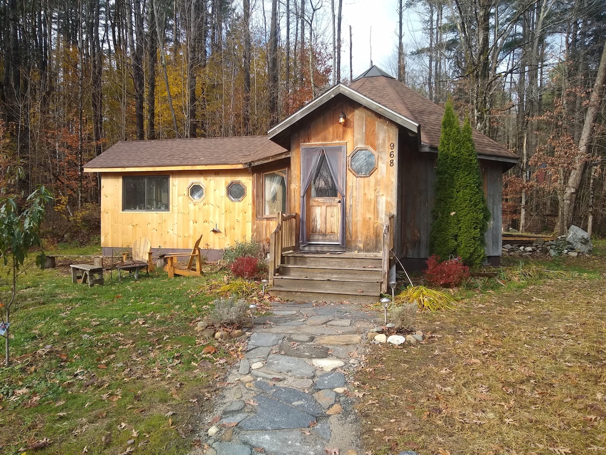 Recently constructed 500sq ft passive solar cabin, 10 minutes to Stratton Mtn., 20 minutes to Mt. Snow and Dover for skiing, shopping, food, or a beer at Snow Republic. Quiet road but very accessible. Perfect area for hiking, biking, relaxing walks along the Ball Mountain Brook or kayaking on Grout Pond or Gale Meadows. Enjoy a campfire in the side yard/former pony corral or relax on the spacious screened in porch. 30 minutes from seasonal farmers market and from Manchester for outlets.