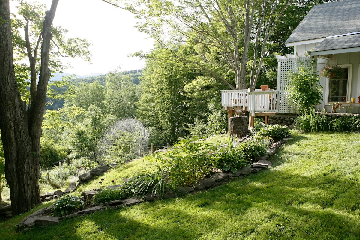 DESCRIPTION Enter our private backyard on 2 1/2 acres by crossing your own bridge far above the forest floor overlooking a stream and waterfall, then meander along a stone path, entering your grape arbor and vegetable garden into your cottage. The gardens where featured in THE Wall Street JOURNAL Sept 11-12 2021