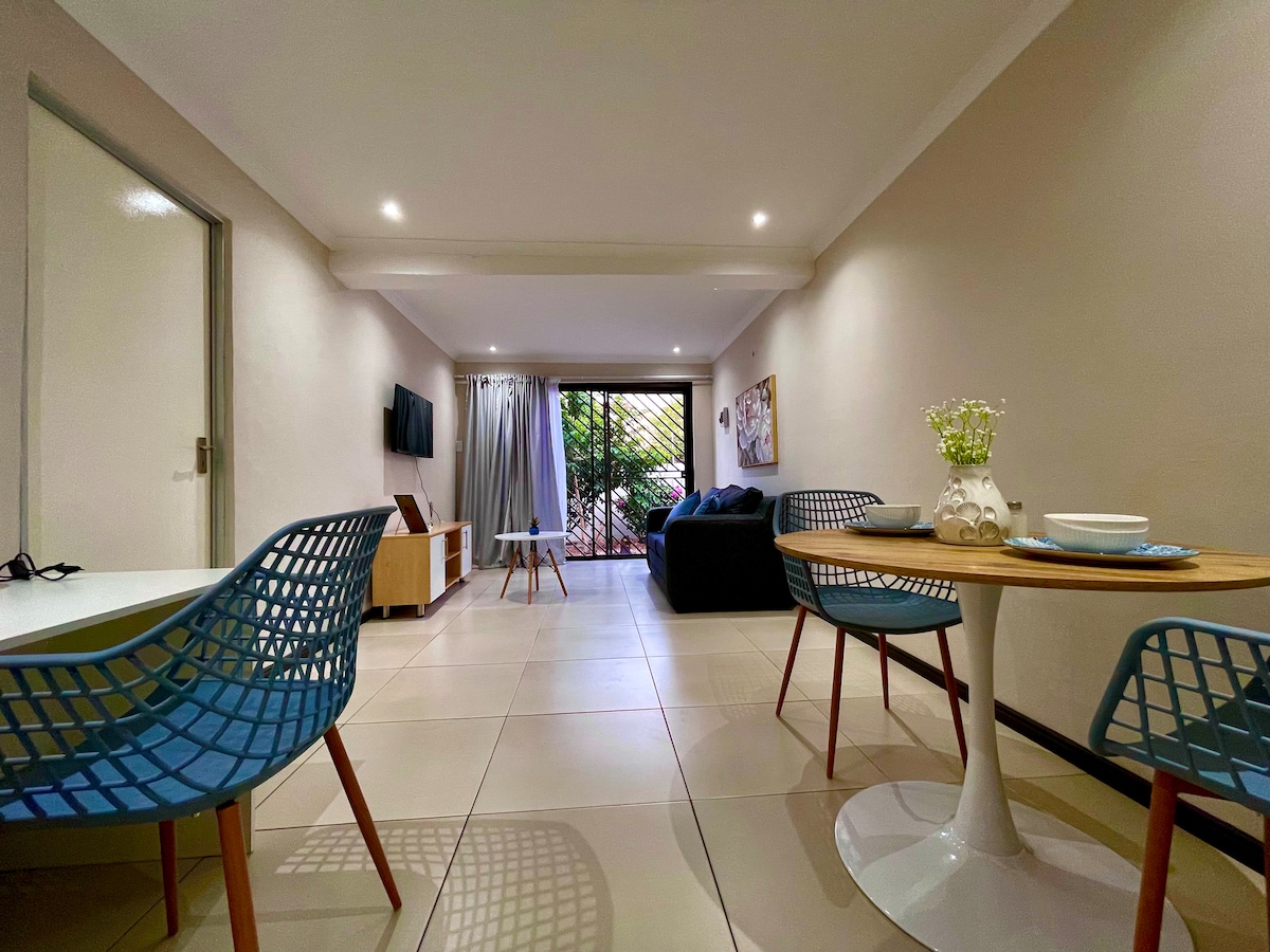 Modern, secure and centrally situated double-story apartment in Windhoek's CBD. This newly renovated two-bedroom flat is on the ground floor of a very popular apartment building that has a small communal swimming pool and barbeque area, both of which you can book for exclusive use (at no extra cost). Fast WiFi, big flatscreen, dedicated workspace, Aircon in living room and 1 bedroom. Washing machine, dishwasher. Safe, shaded parking. The perfect place for 2 couples or a family of 4.
