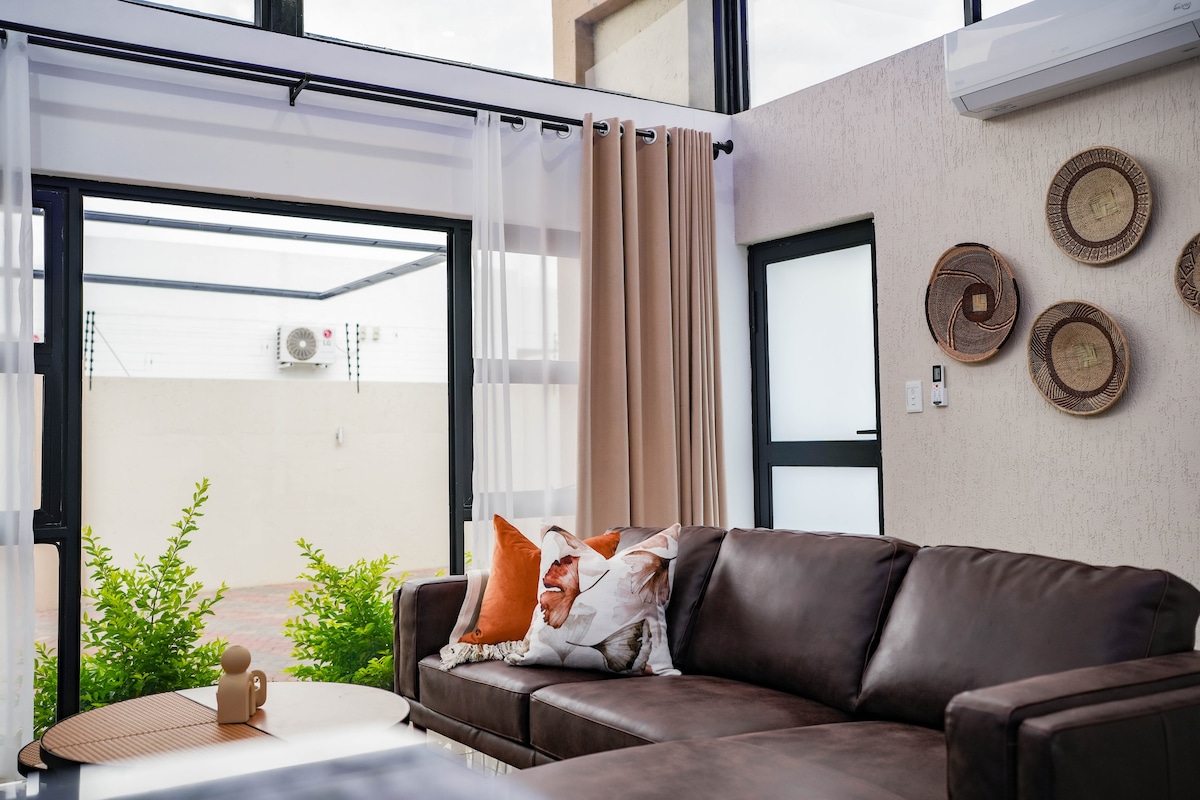 Nestled in the affluent suburb of Hochland Park in Windhoek, 2.8 km from the city centre, The Lofts Luxury Suites emerges offering opulent self-catering apartments. These contemporary suites are ideal for individuals, families, couples, and business travellers. This is a 2 bedroom fully furnished apartment, thoughtfully and beautifully decorated for optimum comfort and style. The apartment is open plan with sleek finishes and ample space. It offers privacy and comprise outdoor patio space.