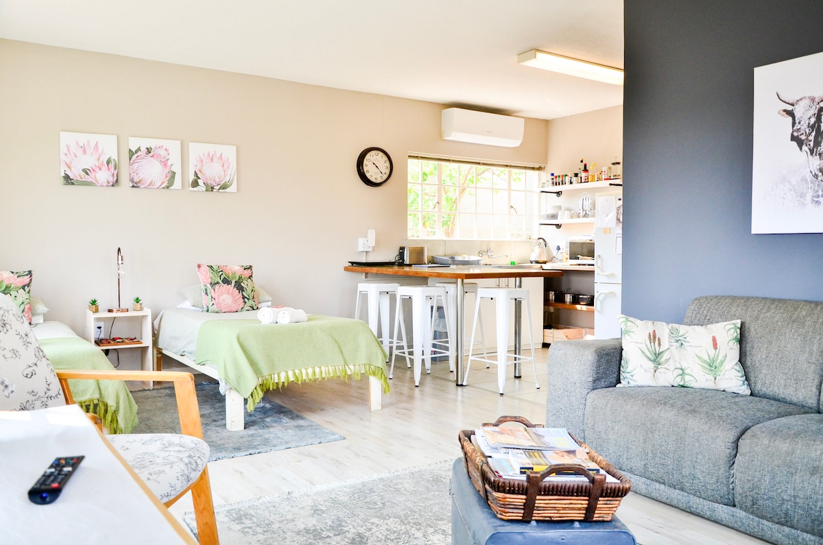 Welcome to our peaceful garden cottage. Located in a safe and secure neighborhood, our home is just a short walk away from local shops, restaurants, pubs and a filling station. You will find a fully equipped kitchen, cosy living area, as well as indoor and outdoor dining options. Step outside to enjoy a traditional Namibian braai, and spend your evenings around our cosy fire pit. Our Airbnb offers the perfect blend of privacy, security, and family-friendly amenities to make your visit enjoyable.