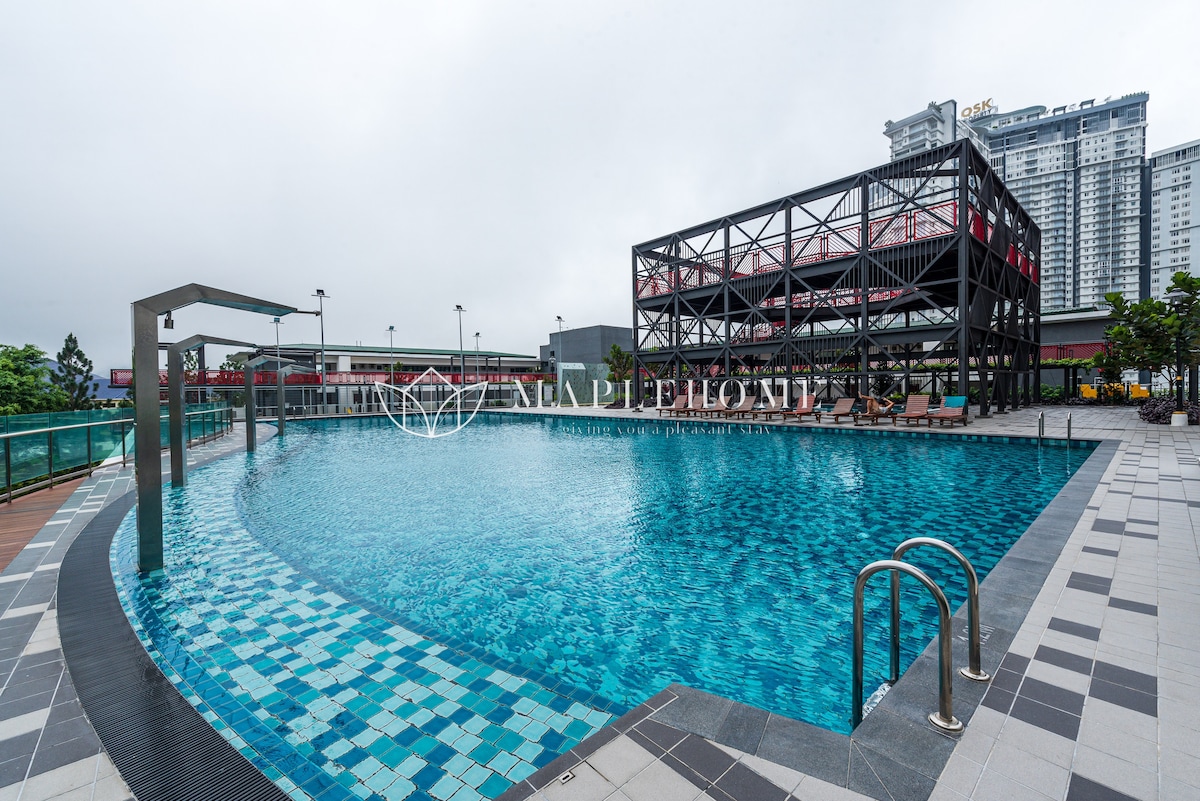 明亮舒适的1卧室套房@ GEO38,带室外加热泳池