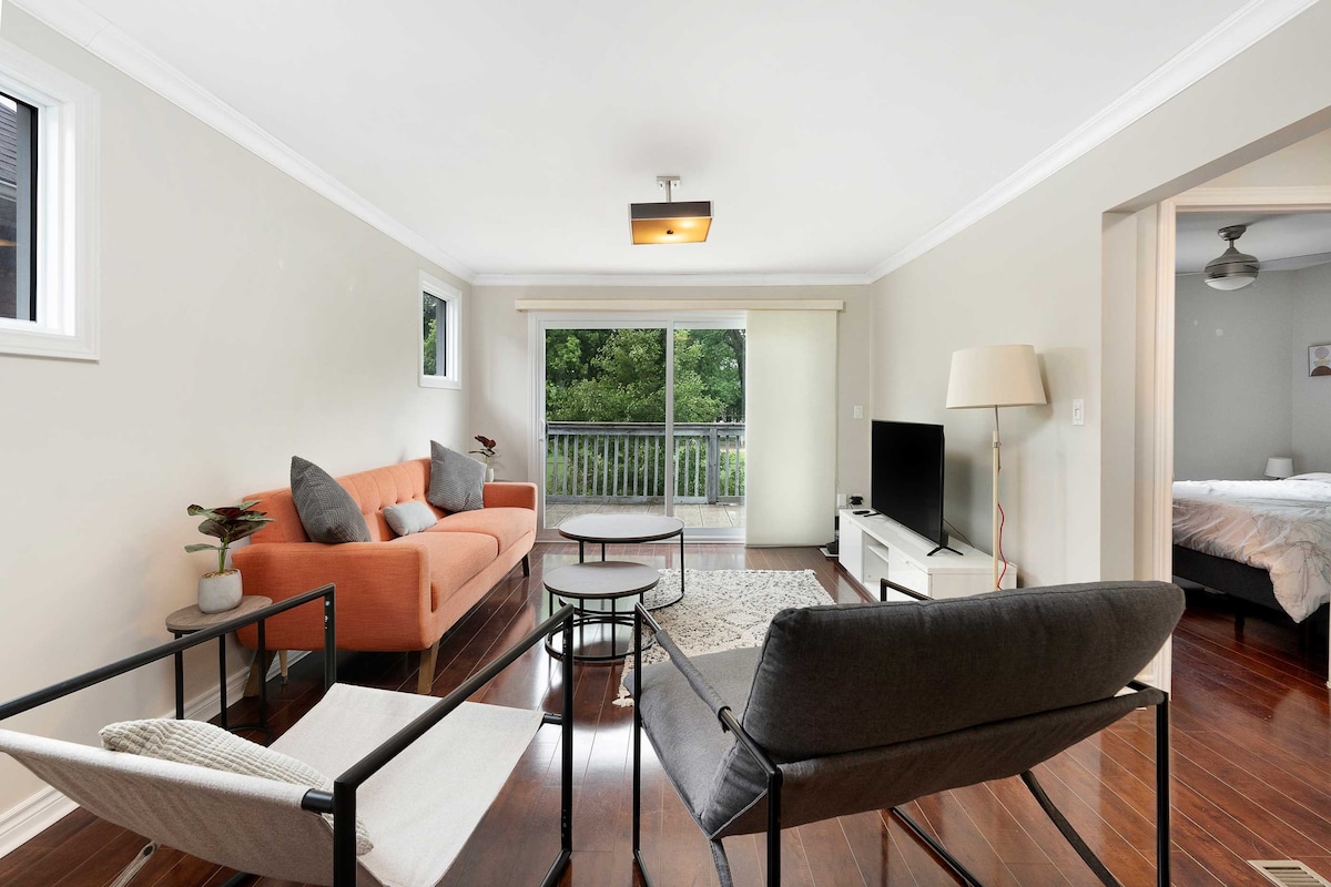 Do you need a nice quite, non-shared clean place to stay ? This cute one bedroom, living room /sleeper sofa, kitchen, full bath (washer/dryer 6 nights + ) Located on the second floor, above our family home, is ready for you to enjoy your stay. In Olde Walkerville, walking distance to restaurants, pubs, boutiques and, the river with walking and bike paths along with summer activities. Short drive to the Casino, Chrysler Theatre / St. Clair Arts, U.S.A Boarder, down town Train Station.