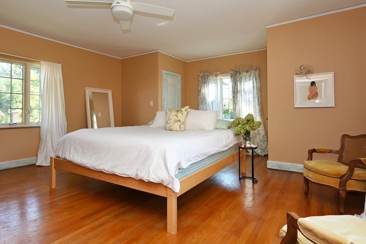 Huge historic home (built it 1898) with high-end interior and 2 separate large private yards. This house is a block away from the Q-line/Woodward Ave. Large Bedrooms, each with their own large private bathroom. There are two separate yards with privacy fencing and thousands of plants and open space. Attached garage. Security system. Great views. Extremely safe. Coffee shops and restaurants in walking distance. Amazing location. Amazing home. Amazing experience.
