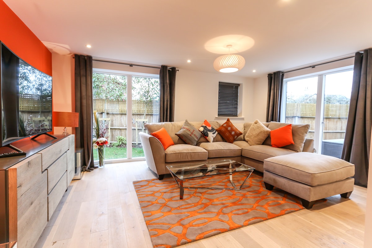 A stylish, open plan and friendly space, in Sunbury-on-Thames. 5 minute walk to the River Thames and village. Large, modern, self-contained annexe, behind Sunbury House; own entrance and space for parking. Walking distance to the river, village centre with great pubs and restaurants. Hampton Court, Shepperton Studios and Kempton Park nearby. Easy access to Richmond, Windsor, Heathrow and M3/M25. Overground train to London Waterloo (50 mins). Garage facility to store bikes or canoe / kayak.