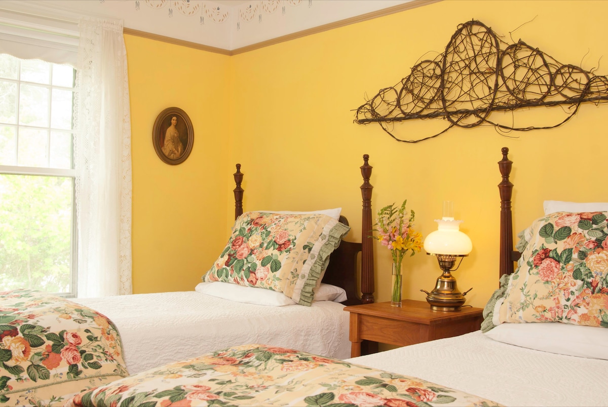 An historic federal meets modern design with this impeccably resurrected home from 1832 situated just steps from the village greens of Chelsea, a quintessential Vermont town. All modern electrical, plumbing, bathrooms with all the historical charm of the 1830s. The French Queen features a queen hand carved bed, 19th century French commode and nightstands, elegant porcelains, a lounge chair and decorative fireplace and large private bath across the hall. A gourmet breakfast is included.