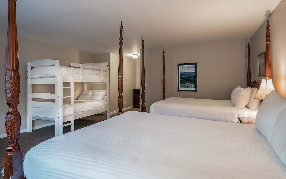 With two queen beds and a twin bunk bed, this room is ideal for groups and families looking to explore scenic Vermont. Plenty of space to unwind and an ensuite bath cover all necessities, allowing you to focus on enjoying your stay. Pet-friendly rooms are available. Please reach out if you are interested. Restrictions apply