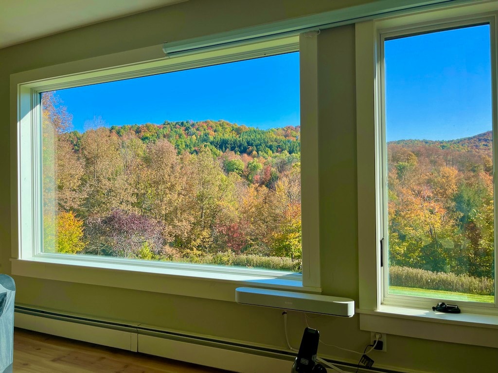 Spacious, light-filled, private apartment in a quiet Vermont village. Full kitchen, dining, living. One bedroom with double bed and A/C; one bedroom with single/day bed, futon couch in living room. Private entrance. NOTE: We have a second, one-bedroom unit in our home titled: "Suite in the Green Mountains".