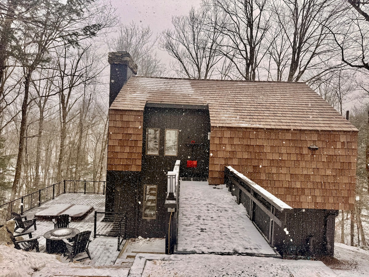 热水浴缸•火坑•靠近滑雪度假村•舒适现代小木屋