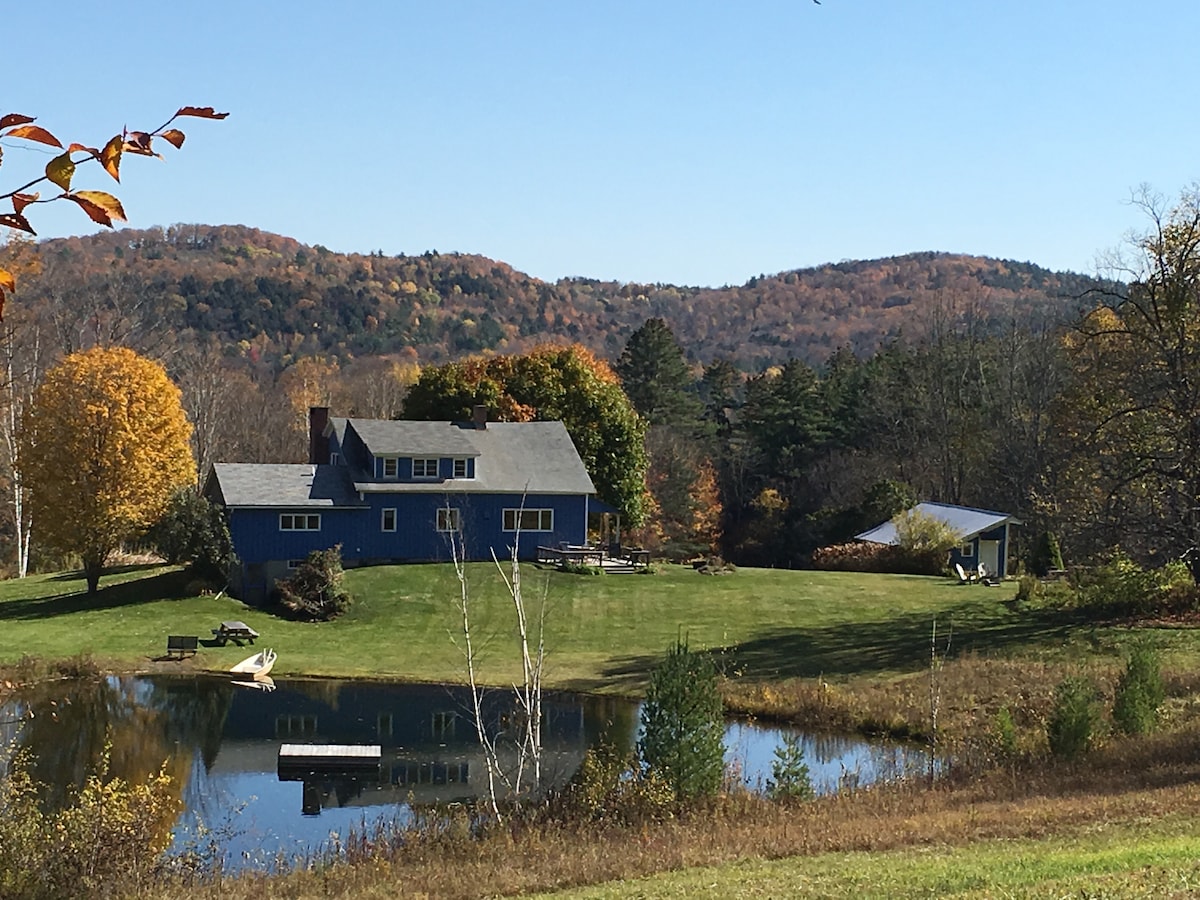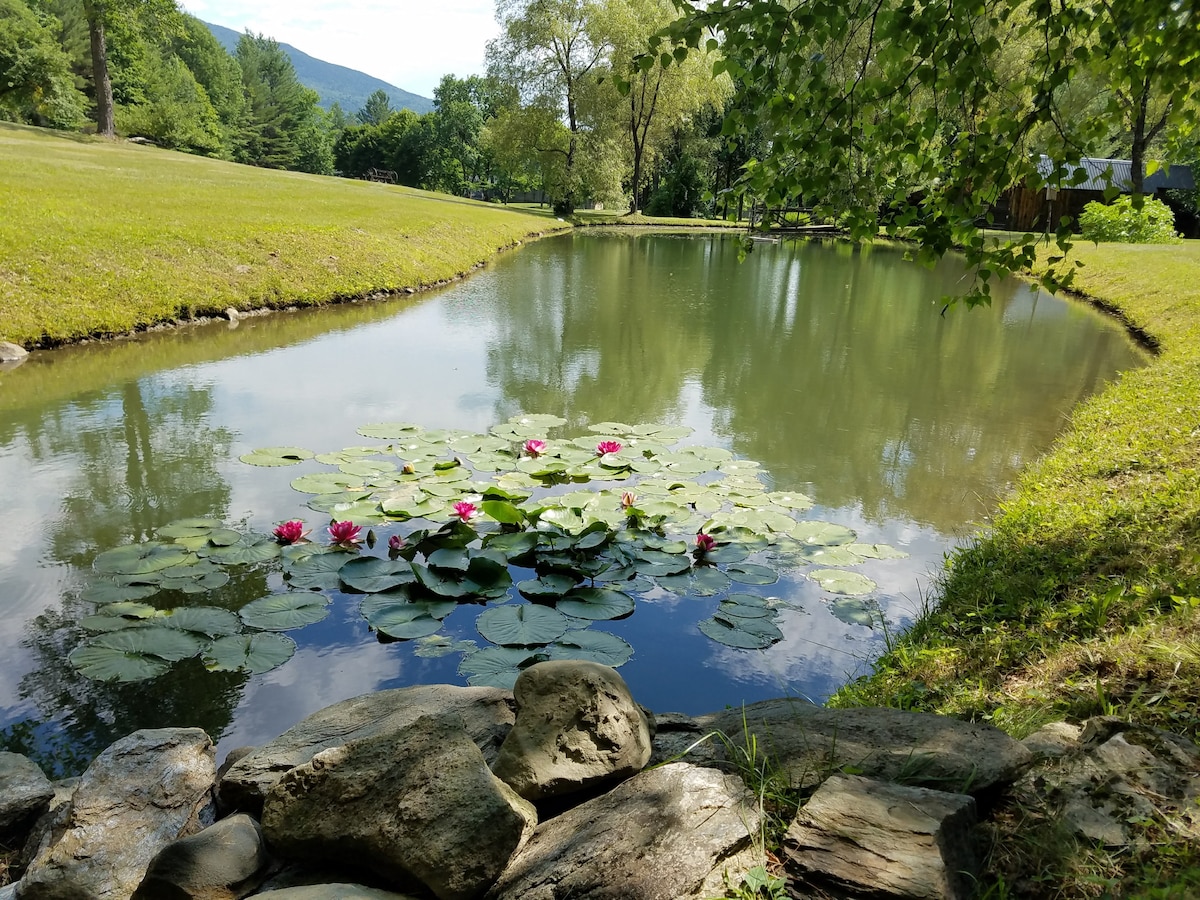 Your private woodlands retreat awaits. Nestled atop a beautiful 10 acre meadow with 25 acres of woods for you to enjoy; this rustic, pet friendly cabin is a perfect romantic hideaway. Two trout ponds are steps from your door for fishing and swimming. Just minutes from Mt. Ascutney's hiking/biking trails and in the middle of fantastic cycling country. Near local race including the VT100, Vt overland, VT50. Sunset Cabin is a marvelous spot for enjoying fall foliage and exploring VT!