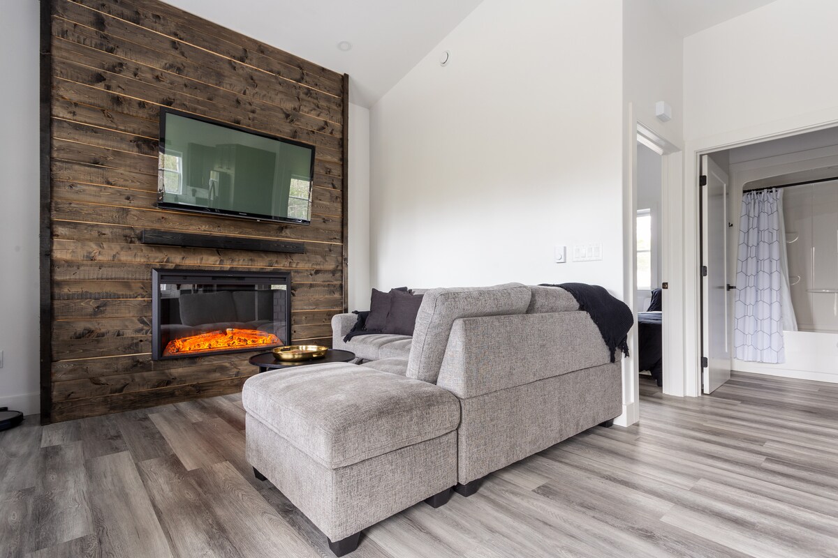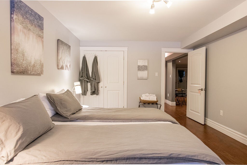 ** No cleaning fee** The closest Airbnb to Ski Martock Large pristine hot tub. Private self contained basement suite, with separate entrance. King suite, full 3 piece bathroom & comfortable living room big screen tv **New kitchenette includes, Apartment sized fridge with freezer, Breville Smart Oven Pro Countertop Convection Oven, microwave, Keurig, toaster. Hot tub access from 11am-11pm Unit is not pet friendly Absolutely no smoking