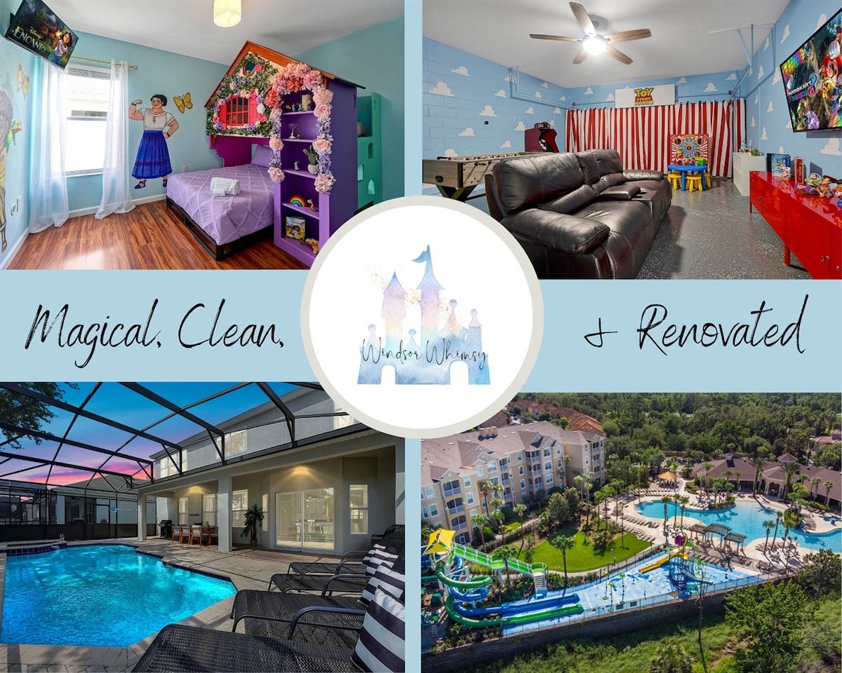 This 3BR/3BA home is minutes from the parks. Dive into your private splash pool or walk to the clubhouse with a heated pool, slides, splash pad, game room & theater. Every room is Disney-themed for nonstop fun and unforgettable family memories! Stop by the store to pick up fresh food, drinks, and more! We are in a Private Resort, 10-15 minutes from Disney! **PLEASE NOTE, WATERPARK CLOSED FOR RENOVATIONS 1/5/26-2/14/26**