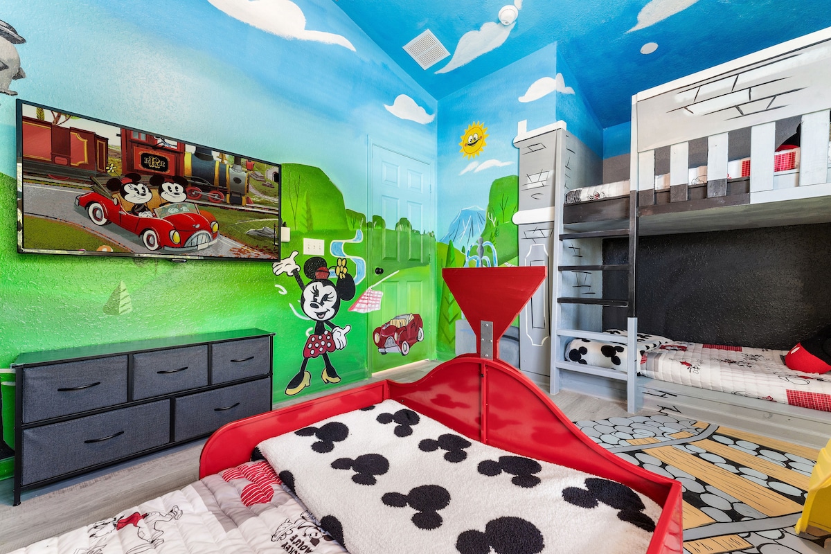 Mickey Train Bed, Free Waterpark, 10 min to Disney