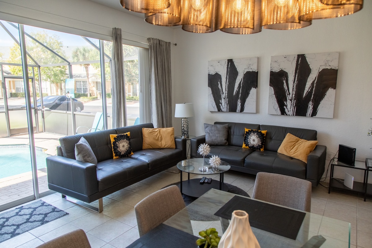 Sleek and modern family townhome includes the best of both worlds— rest easy with spacious living areas, fully upgraded utilities/amenities, and a private pool. Renting our beautiful home grants access to the community clubhouse as well with pool, waterpark, and more. A 10min drive to Disney World and 20min to both SeaWorld and Universal