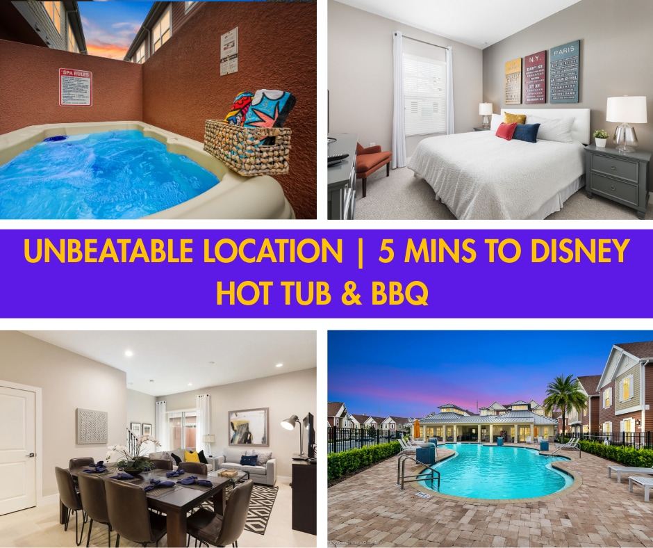 5卧/5卫/5英里迪士尼•加热泳池/水疗•免费乘车!