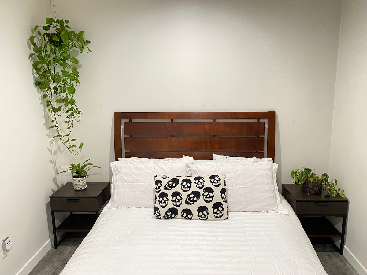 Keep it simple at this cozy - centrally-located place. Contemporary 1 Bedroom House with outside seating to enjoy the evening breeze. Laundry Room and Refrigerator. Full functional Kitchen with Stove,Microwave and Coffee Maker . Convertible couch with USB charger. Bathroom -Shower& Bathtub . Bedroom with queen size Bed and queen size Air mattress. 42 “ TV Wi-Fi -Internet . Separate Driveway. Close to SoFi Stadium, Kia-Form , Beaches, LAX, Staple Center. Self check -in digital door lock .