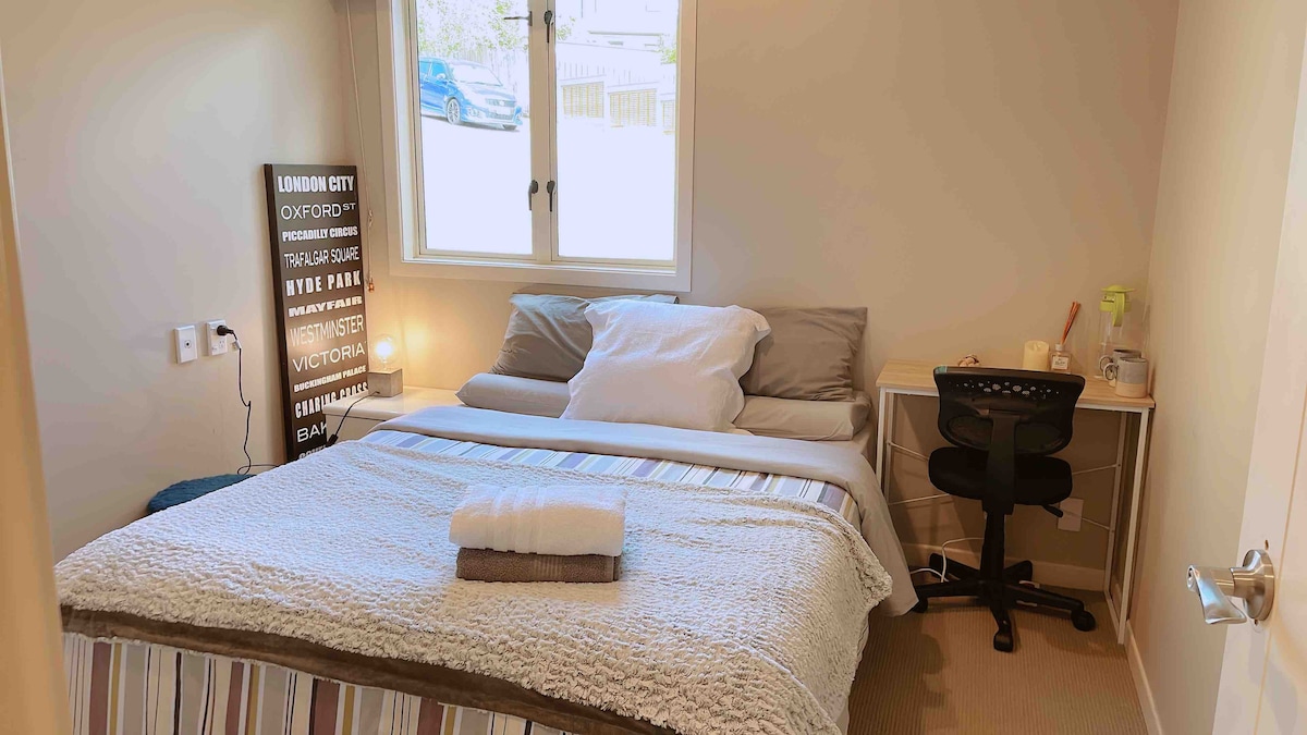 Enjoy complete privacy in our self-contained guest suite with a private entrance. Relax in a luxurious queen-size Tempur bed, and unwind with high-speed Wi-Fi and Netflix. The kitchenette is equipped with a stove, microwave, mini fridge, and utensils, and we provide complimentary tea, coffee, and milk. Private garden, outdoor deck with water fountain, and laundry facilities available. Parking on a quiet street or drive inside, and easy access to local restaurants, parks, and Massey University.