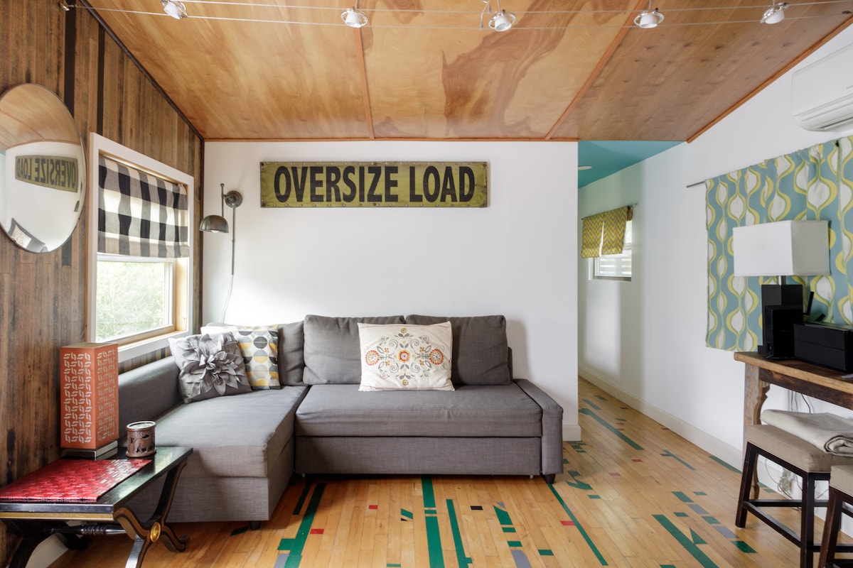 位于奥斯汀东部中心地带的时尚奥利奥小屋