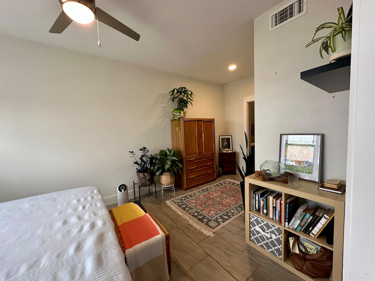 Bright & comfortable studio casita on a peaceful tree-lined street. -comfortably sleeps 2 people, sharing a queen sized bed with new (05/2023) memory foam mattress. -brand new 50” LG 4K UHD smart TV with all of the apps available for your streaming needs. -COLD A/C for hot Austin summers- A/C replaced 10/24. -A Pack-n-Play and high chair are available if you're traveling with a little one. Please request these when making your reservation if you need either.