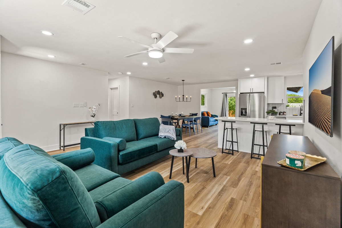 Guests have the run of the place including the completely renovated 50's house, and an extremely private fenced back yard including a huge entertainment space with a 12 foot long dining table, a Weber gas grill for outdoor cooking, the fire-pit (wood provided), and the spa-like outdoor shower.