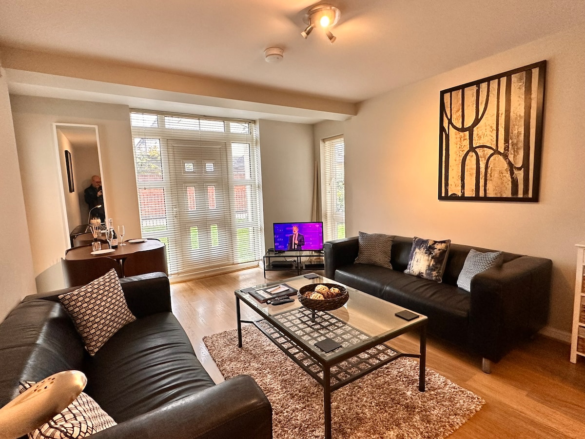 Ground floor apartment with private entrance, close to Ascot, Windsor, Legoland and great for exploring Berkshire. Short walk to Bracknell train station, shops, restaurants and Lexicon shopping centre. Bright open-plan space with king size bed, fully equipped kitchen and modern bathroom. Free parking, fast Wi-Fi, TV with streaming services, comfy workspace and self check-in. Perfect for work trips, weekend stays or visiting local attractions.