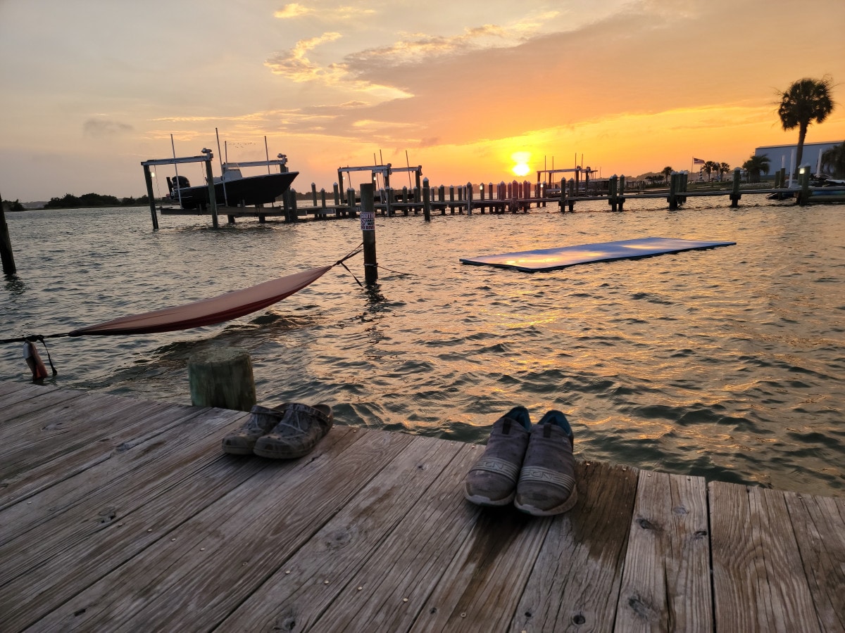 Romantic or Family getaway, this home has it all. Hot tub, fire pit, private dock with Boat lift and unbelievable sunsets over the beautiful waterway. Relax, swim, play, kayak, etc, you will never be bored. We provide a swim mat for endless fun. Large parking area behind the home. Bring your boat or rent our kayaks and visit Sharks tooth island (1/4 mile away) or go spend the day at a beautiful sandbar! 3 miles to beaches, 13 miles to Camp Lejeune,15 miles to Aquarium & Fort Macon.