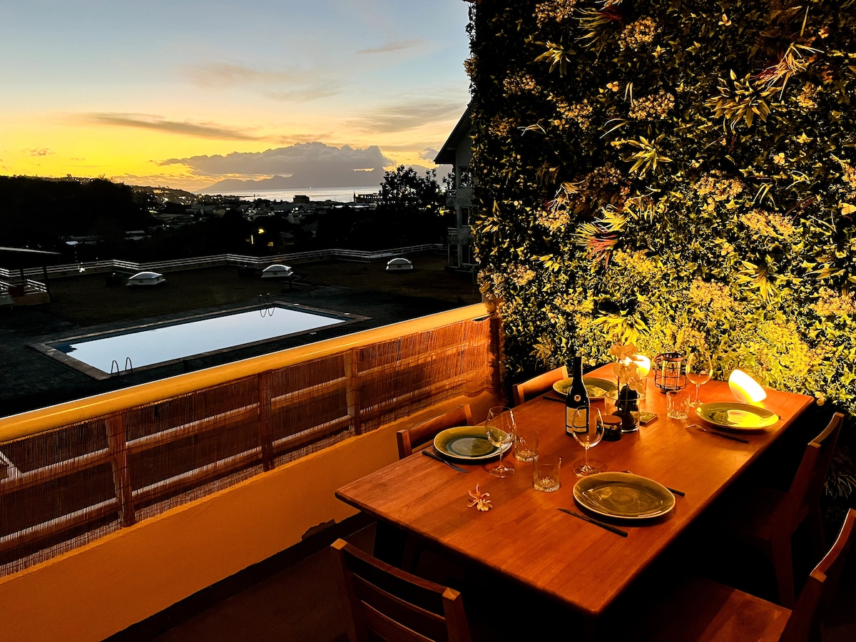 Cet appartement spacieux et tout confort vous séduira par son intimité et sa vue! TV avec abonnement Netflix inclus, cuisine toute équipée+++, climatiseur, rideau black-out, grande terrasse, petit jardinet. Cet appartement est un petit havre de paix, au sein d’une propriété familiale située dans un quartier bourgeois et calme en plein cœur de Punaauia. A 10-15minute de Papeete et de l’aéroport, 5min de la marina Taina. Il y a de nombreux bars et restaurants aux alentours. piscine et jardin
