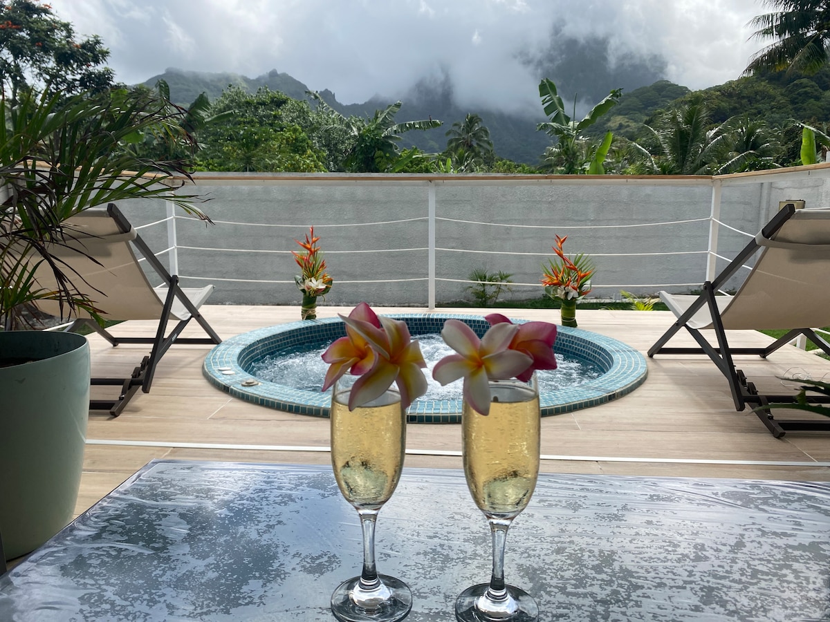 Romantic suite, 100% private and luxury with: - Spectacular 180° panoramic view of the lagoon and the island of Tahiti - Bedroom and separate bathroom with rain shower - Large private infinity pool - Hot tub (Jacuzzi) - Parking, independent entrance and access - All amenities: air conditioning, fiber optic WiFi, smart TV, free mini-bar with champagne, Nespresso, Tea, Fitness equipment,.. According to the comments received, the place is considered perfect for honeymoon or wedding anniversary.